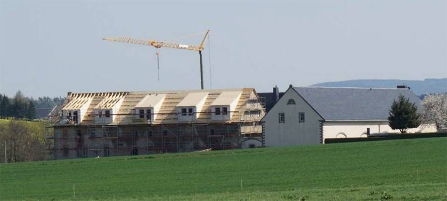 Der Umbau des Wohn-Stallhauses am Heberhof wurde im Januar begonnen. Unser Konzept sieht vertikale Teilungen im Stützenraster des ehemaligen Stallbereiches vor . Die Kreuzgewölbe über dem Erdgeschoss werden Bestandteil in jedem der entstehenden Wohnsegmente. Dadurch entstehen Wohnungen mit hoher Individualität.